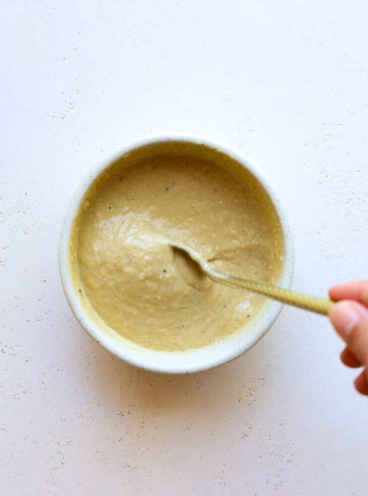 • For the dressing, whisk all the ingredients together except the water. Slowly add water 1 tbsp at a time, until the consistency is as creamy as you'd like. Taste and adjust salt as necessary. Note: for a creamier dressing, add everything to a blender instead!