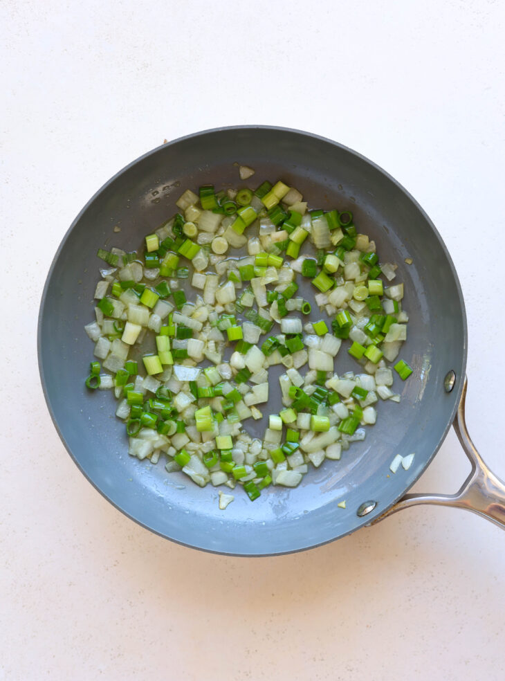 - Heat the oil on a skillet over medium heat and sauté the onions until softened, about 5 minutes. Add the garlic and cook for about a minute.
