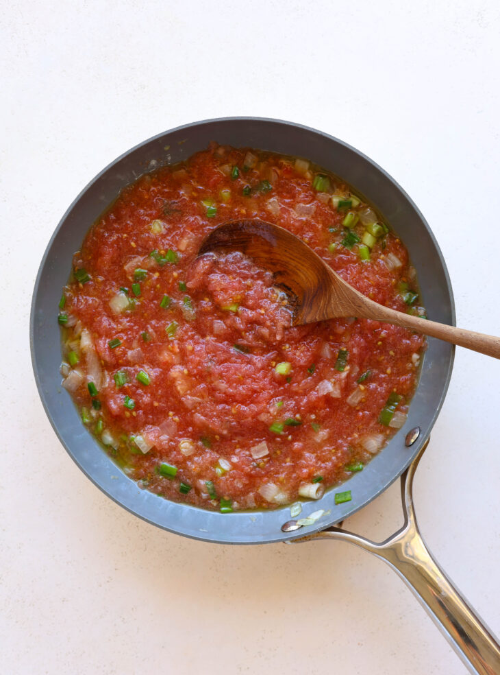 Now don’t get me wrong, there are several ways to make hogao, and I have tried many! This method involves grating tomatoes, and while it is more involved, I prefer this texture over chopped tomatoes. It creates more of a “sauce” like consistency.